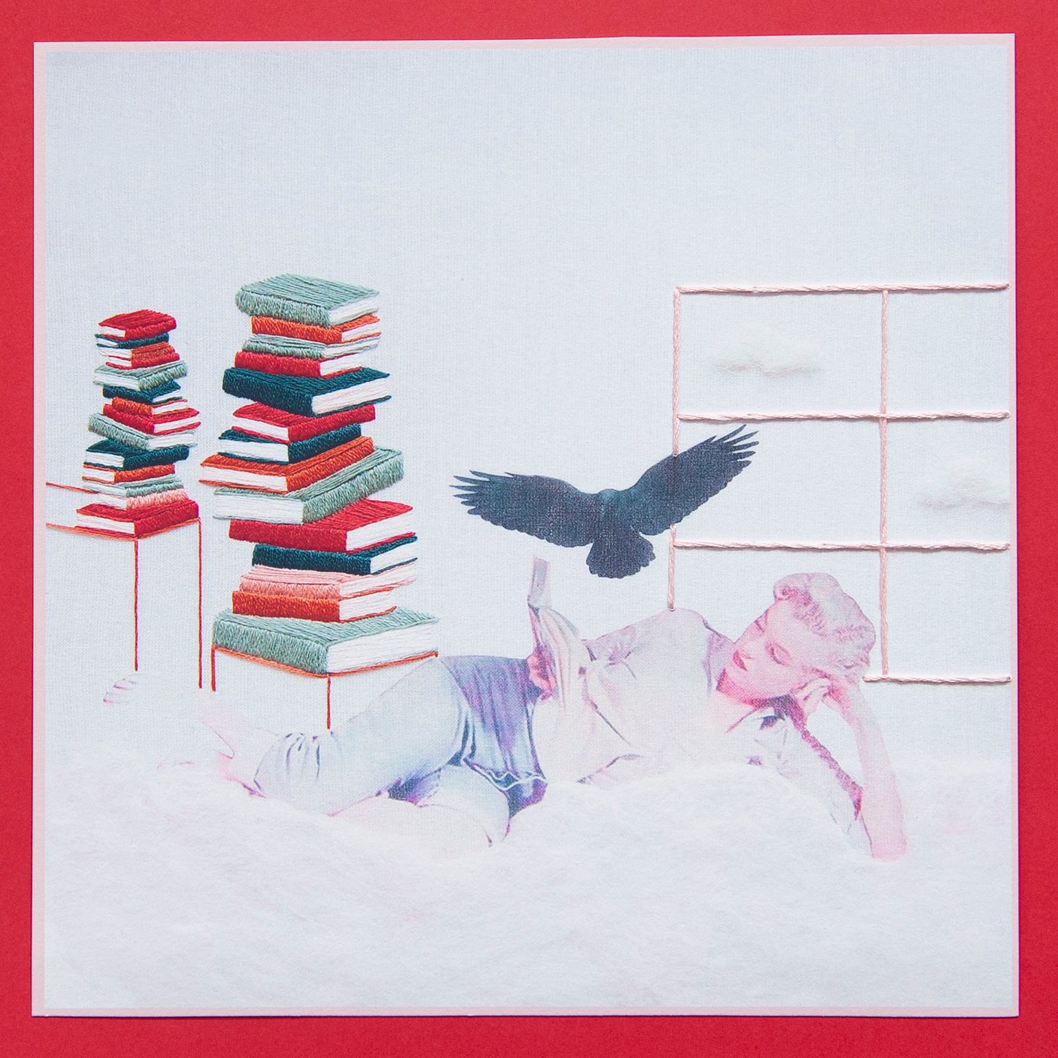Láminas bordadas que versionan cuadros del Museo Thyssen.